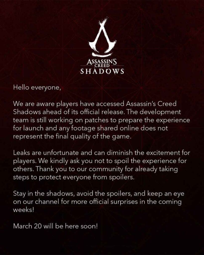 The early leak of Assassin’s Creed Shadows caused both the gaming community to be thrilled and skeptical. The proof indicates that some players have managed to receive the game before the official release on March 20, 2025, but as there are no official confirmations, there is still a question about everything.